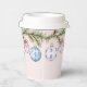 Cette tasse en papier présente un motif extensible de Pink and Blue Ornaments sur une branche à feuillage persistant sur un arrière - plan rose vif.