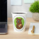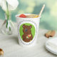 Un ours brun tenant une crème glacée avec plusieurs boules. Cette conception semble vraiment efficace sur ces tasses de papier