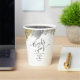 Les pièces de cette belle suite mariage sont décorées de touches de peinture à l'aquarelle modernes surlignées de poussière de parties scintillant dans une palette classique de couleur or et charbon de bois avec un arrière - plan blanc qui peut facilement être changé selon vos préférences. La tasse en papier mariage montrée ici présente le texte plus fluide du script ci-dessus "merci beaucoup" et un modèle pour ajouter facilement les noms des célébrants. Cherchez ID585 pour voir toutes les pièces correspondantes dans ce bel ensemble de mariages.
