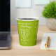 Mariage de couleur verte pardot célébrant 1 an de fête d'amour coupe de papier fête anniversaire. Célébrant 1 an d'amour, une simple ligne d'effet de pierre cardiaque graphique en blanc sur une couleur arrière - plan verte tasses personnalisées. Customisez avec votre choix de noms ou de relations, leurs dates d'anniversaire. D'autres articles correspondants sont disponibles. Le premier anniversaire du mariage est associé au péridot de pierre verte et le coeur symbolise l'amour. Graphismes originaux et design par Sarah Trett pour www.mylittleeden.com et