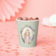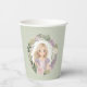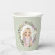 Ce joli design présente une illustration fantaisiste de Rapunzel entourée de fleurs vert pâle et violet.