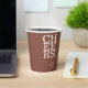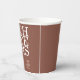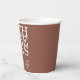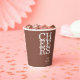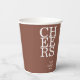 Cet ensemble mariage moderne a une atmosphère chaleureuse et personnelle et de nombreuses pièces présentent un design abstrait et aquarelle ressemblant à des reflets sur l'eau. Cette tasse de papier de coordination a une couleur solide arrière - plan de terre cuite foncée, typographie frappante de "Cheers" avec vos noms et date mariage. Recherchez ID774 pour voir l'ensemble complet des produits correspondants et des options de couleur supplémentaires pour cette conception.