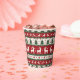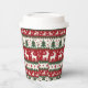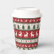 Featuring a cozy knit-inspired red, green, and white pattern with reindeer, Christmas trees, and snowflakes — perfect for hot cocoa, coffee, tea, or holiday parties.