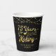 Retro 75ème anniversaire tasses personnalisées en papier avec le titre 75 ANS DANS LA FABRICATION dans une typographie de script de calligraphie qui incorpore son année de naissance dans le design et votre texte personnalisé ci-dessous (l'exemple montre HAPPY BIRTHDAY NAME) en or accentué avec des lumières à cordes et votre choix de couleur arrière - plan (montré en noir). ASSISTANCE : Pour obtenir de l'aide sur la modification ou la personnalisation de la conception, le transfert de la conception à un autre produit ou si vous souhaitez coordonner des éléments, contactez le concepteur AVANT LA COMMANDE via l'onglet MESSAGE Conversation Zazzle ci-dessous ou envoyez un courriel à makeitaboutyoustore@gmail.com.
