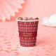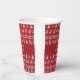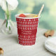 Un arbre de Noël vintage, un flocon de neige et un motif de chandail en Jacquard de rennes en rouge autour de votre texte personnalisé sur une tasse de papier fête de vacances. Customisez vos vacances avec ces belles tasses nostalgiques et démodées.