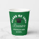 Coupes personnalisées en vert et blanc pour une école secondaire, un collège ou une université. Customisez avec votre nom d'école et la classe de fin d'études sous l'élégante calligraphie pour un décor de célébration d'anciens élèves personnalisé.