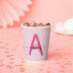 Gobelets En Papier Rose vif Moderne Écriture Féminine Monogramme Nom