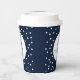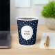 Cette tasse en papier minimale est munie d'un logo simple et d'un motif confetti brosse sur un arrière - plan bleu marine. Ajoutez votre logo et customisez le texte avec vos informations. Vous pouvez utiliser cette tasse personnalisée à votre lieu d'affaires, magasins, événement d'entreprise ou, etc.