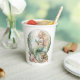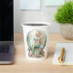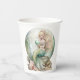 Coupes en papier de sirène - Une belle et longue sirène aux cheveux clairs, des fleurs rose pâle dans ses cheveux et sur son corps, sa queue est faite d'écailles vertes et dorées, brillant dans la mer brillante. Elle est assise sur un rocher, tenant un grand orbe vert et blanc. Qu'y a-t-il à l'intérieur ? Peut être une perle, un peu d'or ou un autre trésor mystérieux. Au dos est l'écriture - This is My Cup - avec espace pour écrire le nom du propriétaire à la fête!