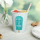 Conçues pour correspondre aux invitations de fête d'anniversaire de nos enfants célèbres, ces mignonnes tasses personnalisées en papier présentent un popsicle turquoise brillant avec les mots "Joyeux anniversaire [Nom]" en lettres rétro blanches ornées d'un coeur.
