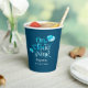 Tasse de papier de la fête de 9 ans Dreamy avec illustration de nuages bleus avec un texte typographique qui dit "sur le neuf nuage."