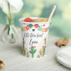 Donnez le ton à votre fête avec ces magnifiques et élégantes tasses en papier sur le thème de la fête du cactus. Des couleurs pastel douces et des illustrations dessinées à la main caractérisent cette suite d'invitation. Le thème Fiesta est parfait pour une fête d'été.