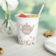 Une théière rose avec "thé pour deux" typographie à l'intérieur, ainsi que des fleurs sauvages délicats peints à l'aquarelle sur le fond. Parfait pour votre fête du thé du 2e anniversaire !