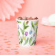La conception du produit présente un motif de fleurs de tulipes colorées en violet, rouge, rose, bleu et jaune. Cette illustration botanique crée des gobelets en papier modernes et uniques pour son anniversaire, Pâques, la fête des mères ou une fête de mariage.