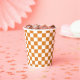 Chèque orange rétro. Skateboard Let's Kick It, Coupes de fête d'anniversaire avec chèque orange.