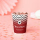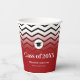 Cette tasse de papier graduation présente des zigzags noirs et blancs classiques comme l'arrière - plan accentué par une couleur dégradé rouge foncé. Cette conception est accentuée avec un mortier au-dessus du texte.