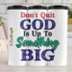 This powerfully motivational white graphic boldly declares, "Don't Quit GOD Is Up To Something BIG," in red, blue, black, and green text. It's an inspiring call to perseverance and faith, reminding believers that divine plans are always greater than current struggles. Perfect for encouraging resilience and trust in God's mighty future works.