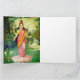 Lakshmi wird in indischer Kunst als elegant gekleidete, wohlhabend duftende goldfarbene Frau dargestellt, die stehend in Padmasana auf einem Lotusthron sitzt, während sie einen Lotus in der Hand hält, der Glück, Selbstkenntnis und spirituelle Befreiung symbolisiert. Ihre Ikonographie zeigt sie mit vier Händen, die die vier Aspekte des menschlichen Lebens darstellen, die für die hinduistische Kultur wichtig sind: Dharma, Kāma, Artha und Moksha.