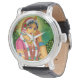Uhr, Vintage Männeruhr mit schwarzem Lederarmband