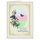 Eine wunderschöne BlumenGeburtstagskarte für eine Patostochter. Ein wunderschöner Blumenstrauß mit blauen und weißen Blume und einem braunen Schmetterling. Das Bild hat einen zarten goldenen Rahmen.