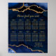 Dieses elegante und glamouröse Hochzeitstisch-Sitzdiagramm zeichnet sich durch einen marineblau-marmorierten Hintergrund mit goldenen Glitzer-Akzenten in Imitaten aus. Der Text kombiniert handgeschriebene Skripte mit modernen serifenlosen Schriftart für ein elegantes und raffiniertes Aussehen. Dies ist perfekt für Herbst- und Winterhochzeiten.