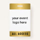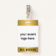 Passen Sie dieses Imitat Metall Gold alle Access Event Pass Abzeichen mit Ihrem Logo. Wenn Ihr Logo quadratisch ist, füllt es den weißen Raum vollständig aus. Wenn Ihr Logo nicht quadratisch ist, wird es auf einem goldenen Hintergrund angezeigt. Die Rückseite des einfachen, modernen Design-Abzeichens kann mit dem Veranstaltungsnamen und Datum oder Jahr personalisiert werden, oder Sie können beide löschen, um eine ganz goldene Farbe zurück haben. Dieses minimalistische Abzeichen für alle Zugangskarten ist ideal für verschiedene Pässe bei besonderen Veranstaltungen, Festivals, Konzerten und Kongressen. Sie können den Namen des Passes leicht personalisieren, wenn Sie möchten.