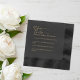 Gold and Black Script Calligraphy Wedding Fun Fact Foil Napkins. Share your love story with these elegant gold script "Fun Facts" wedding napkins. These stylish napkins are perfect for adding a personal and engaging touch to your reception tables, allowing guests to learn amusing details about the happy couple. The shimmering gold foil text on a deep charcoal background creates a sophisticated and memorable ambiance for your special day. Make your wedding reception unforgettable with these unique and conversation-starting napkins.