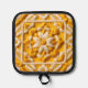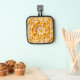 This pretty pot holder may look like it's made with delicate needlework, but it provides protection against heat. And the flower design is nice looking, almost retro style.