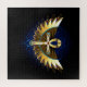 Golden ägyptischer Knöchel mit gemusterten, glänzenden Flügeln auf schwarzem Hintergrund. Magisches Symbol.