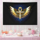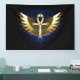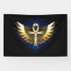 Golden ägyptischer Knöchel mit gemusterten, glänzenden Flügeln auf schwarzem Hintergrund. Magisches Symbol.