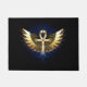 Golden ägyptischer Knöchel mit gemusterten, glänzenden Flügeln auf schwarzem Hintergrund. Magisches Symbol.