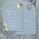 Elegante goldfarbene Blumengrün staubige blaue Probe Dinner Einladung mit Ihren Namen und Probe Dinner Details Set in schicken Text und Ihre Monogramm Initialen auf der Rückseite. Entwickelt von Thisisnotme©