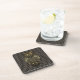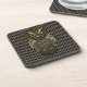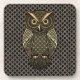 Gold Art Deco Great Horned owl on a copper colored Art Deco fan pattern.