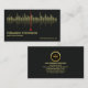 Oben auf der Karte befindet sich ein goldenes Equalizer-Logo, das Sie verwenden können. Darauf folgen Ihr Name, die Kontaktdaten und eine Slogan-Option. Das Logo kann auf Wunsch durch ein Foto ersetzt werden, die Abmessungen sind 1.000 x 1.000 Pixel. Alle Buchstaben sind in Imitat Gold.