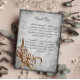 Mit seiner vergoldeten Blume und dem Hintergrund antiker Pergamente sieht diese Dankeschön-Hochzeitskarte sowohl rustikal als auch elegant aus. Man kann es mit eigenen Worten personalisieren, um es wirklich zu einem eigenen zu machen, oder es einfach so verlassen, wie es ist. Auf der Rückseite der Karte befindet sich auch die gleiche schöne Blume aus metallischem Gold.