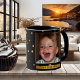 Benutzerdefinierte Foto-Tasse in schwarz mit goldenen Konfetti-Punkte und Ihre eigenen Lieblings-Fotos und Texte. Wenn kein Text gewollt wird, können Sie die Labels und Textfelder löschen. Schön, sich selbst zu Leckerei oder als Weihnachtsgeschenk, Muttertag oder Geburtstag.