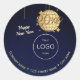 Fügen Sie Ihrer Urlaubspackung und -post eine Touch Eleganz mit diesem raffinierten Silvesteraufkleber mit drei schimmernden Goldbaubles auf tiefblauem Hintergrund hinzu. Ein Ornament hebt das Jahr 2026 hervor, während ein anderer vollständig mit Ihrem Unternehmens- oder Firmenlogo anpassbar ist. Eine raffinierte Art, "Happy New Year" zu sagen und Ihr saisonales Branding zu verbessern - ideal für Umschläge, Geschenkpackungen, Produktverpackungen oder Kundengeschenke.