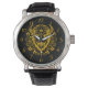 Uhr, Vintage Männeruhr mit schwarzem Lederarmband