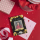 Schöne Geburtstagskarte mit Foto, Ballons und Geschenken in Schwarz und Gold