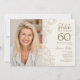 Blütengoldcreme und schwarze Überraschung 60. Geburtstagsfeier mit Ihrem Foto auf der Vorderseite der Karte. Elegantes modernes Design mit botanischen Kontur Zeichnungen Akzente und Typografie Drehbuch Schriftart. Einfache, trendige Einladungskarte für eine stilvolle Damenfeier. Kann für jedes Alter angepasst werden. Gedruckte Zazzle Einladungen oder Sofortdownload digitalen druckbaren Vorlage.