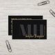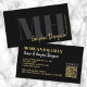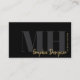 Black Beruflich Simple Modern Monogram Business Card. Sie können dieses Design an jedes Geschäft anpassen - Makeup-Künstler, Laserspezialist, Friseur, Berater, Vermarkter und mehr! Beide Seiten sind mit einem schwarzen Hintergrund mit einer Mischung aus dunkelgrauem, goldfarbenem und weißem Schriftart und Akzenten versehen, die einen kühlen und dennoch eleganten Kontrast schaffen. Die Typografie verbindet klassische und kühne Stile mit einem eleganten Script-Schriftart für die wichtigsten Details und verleiht ihr ein raffiniertes und modernes Ambiente. Die Rückseite hat Platz für einen weißen QR-Code, um Kunden einfach mit Ihrer Website zu verbinden, mit der Koordination von gold-weißen Social-Media-Icons darüber (Sie können alle entfernen, die Sie nicht gewollt haben). Diese Karte ist schick, beruflich und vielseitig, mit Farben, die vollständig an Ihre Marke angepasst werden können. Der Seitenname auf der Vorderseite ist so konzipiert, dass er mit den meisten Initialen funktioniert, aber bei Bedarf können Anpassungen im Volleditor vorgenommen werden.
