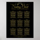 Dieses 9-Tisch Hochzeitsstühle-Diagramm wird es Ihren Gästen erleichtern, ihre Sitzplätze an Ihrem Hochzeitsempfang zu finden. Die goldene Schrift mit einer Vintagen Imitat-Folie blühe oder filigrane auf schwarzem Hintergrund.