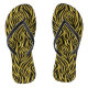 Schwarze Flip Flops mit einem Muster aus Gold und schwarzen Zebrastreifen, die perfekt sind, um Ihr Outfit für jeden Anlass zu verkleiden.