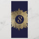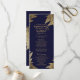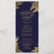 Einfaches, modernes und elegantes Imitat mit goldenem Design mit gezeichnet Blattmuster auf marineblau, Hochzeitsprogrammkarten. Dieses klassische und raffinierte Design ist perfekt für das trendige und stilvolle Ehepaar. Personalisieren Sie Ihre eigene Nachricht auf der Vorderseite sowie ein individuelles Monogramm auf der Rückseite. Das gesamte Foto-Druckdesign.