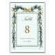 Watercolor evergreen pine garland table number with names and date. For more advanced customization of this design, please click the BLUE DESIGN TOOL BUTTON above!