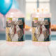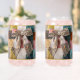 Gold bow soda glass with impression of wrapped present, fun for any friendly gathering.