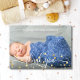 Personalisierte Babydusche mit Babyausweis / Babybild (oder Mami-to-be). Kalligraphie-Skript in weiß und gold mit Imitaten Gold Konfetti. Die Rückseite der Karte hat eine blaue Farbe mit der Option, Ihren Text hinzuzufügen. Perfekte Karte für jedes Babyduschthema.