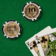 Poker chips for employees or clients to celebrate the 10th anniversary of your business. Commemorative design personalized with your company logo and the year on the front, with a faux gold metal background, a laurel branch, and stars. On the back, it has space to add a bigger logo or an image, and it can be changed to text by clicking the button to edit the design.