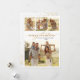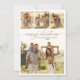 Elegantes, modernes Kalligraphie Script 4 Foto Collage Weihnachtskarten. Diese festliche, minimalistische Weihnachtskarte mit hübschen vier (4) Foto-Collage, ein "Frohe Weihnachten"-Grußtext, der in einem kursiven handgeschriebenen, in Gold und Weiß geschriebenen Schriftart mit geschwaschenen Schwänzen geschrieben ist. Auf der Rückseite Glitzer Konfetti Ecken und vorgefertigte Nachricht. Diese Weihnachtskarten sind eine tolle Möglichkeit, die Liebsten daran zu erinnern, dass sie sich in dieser Winterferien-Jahreszeit an sie erinnern.