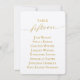 Gold Calligraphy Seating Chart Card Card Card Einladung
